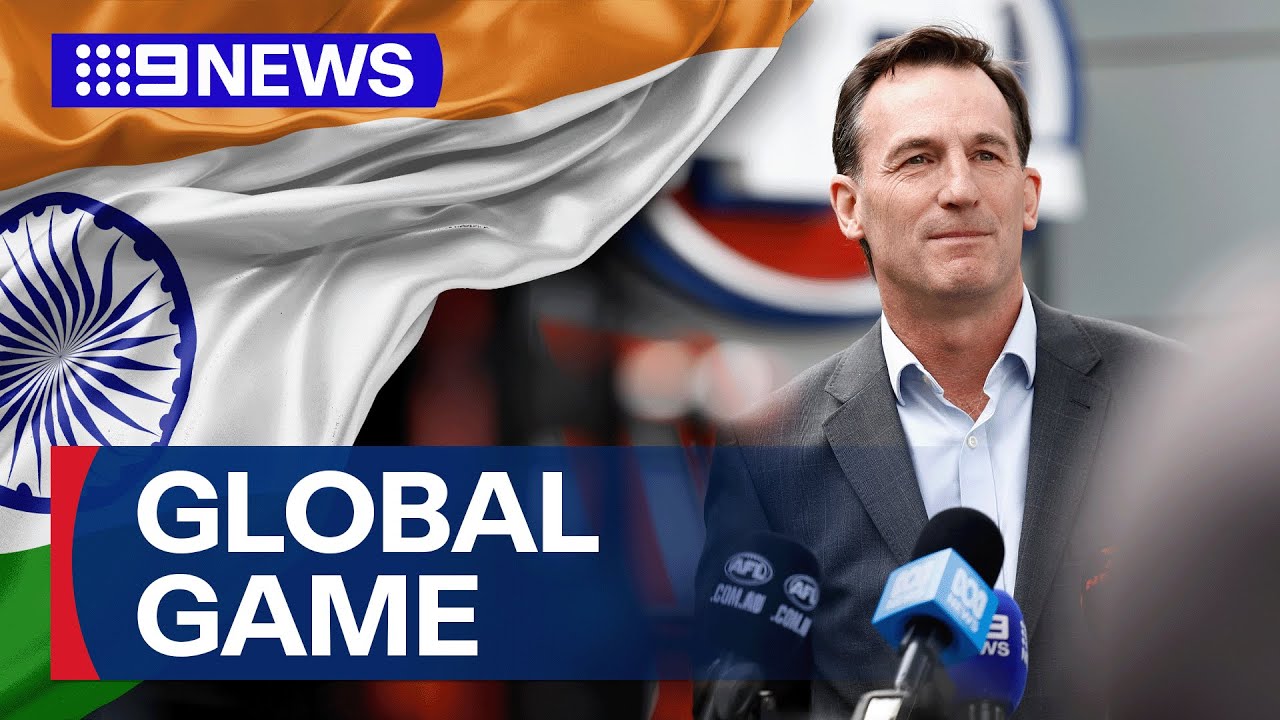 AFL boss Andrew Dillon has flown to India as the league embarks on a bold new bid to grow the game overseas. | *Subscribe and 🔔: http://9Soci.al/KM6e50GjSK9*