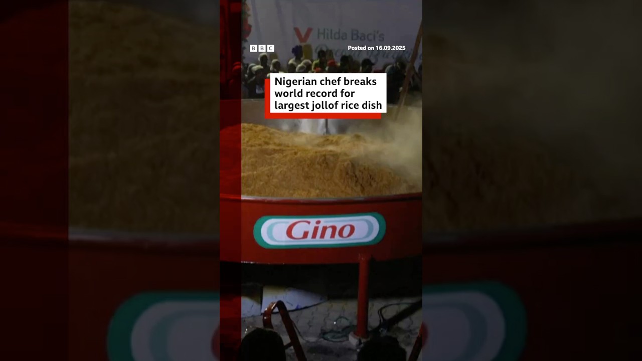 Nigerian chef breaks world record for largest jollof rice dish. #GuinnessWorldRecord #BBCNews September 16, 2025 admin Facebook Twitter Pinterest BBC NewsTue, September 16, 2025 10:42amURL:Embed: Facebook Twitter Pinterest