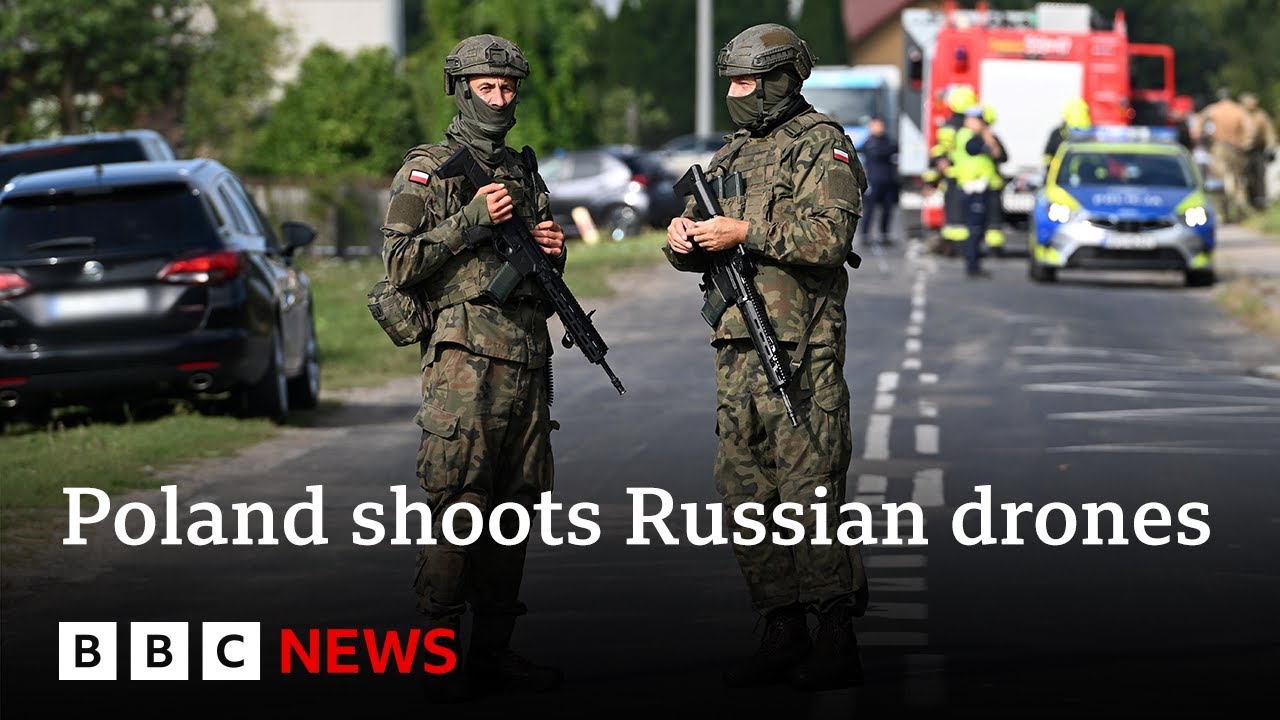 Ukraine’s President Zelensky said “at least eight strike drones” were aimed towards Poland, and called the escalation an “extremely dangerous precedent for Europe”.
