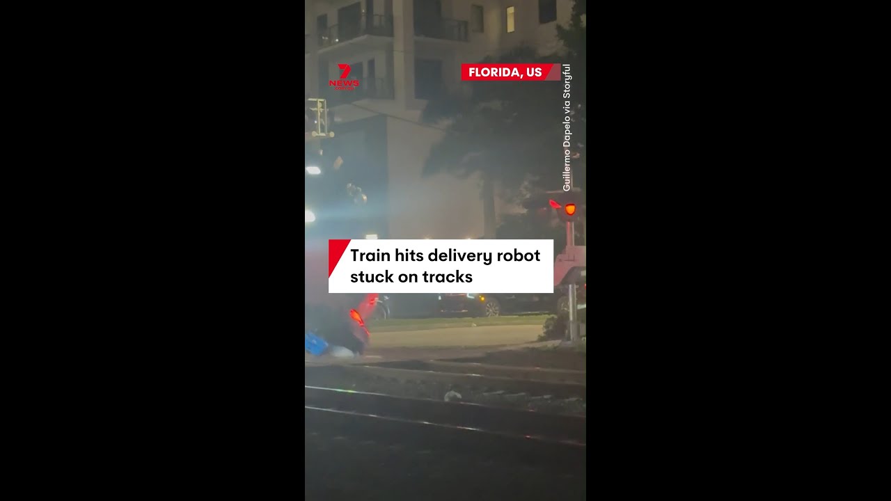 Train demolishes delivery robot stuck on tracks
